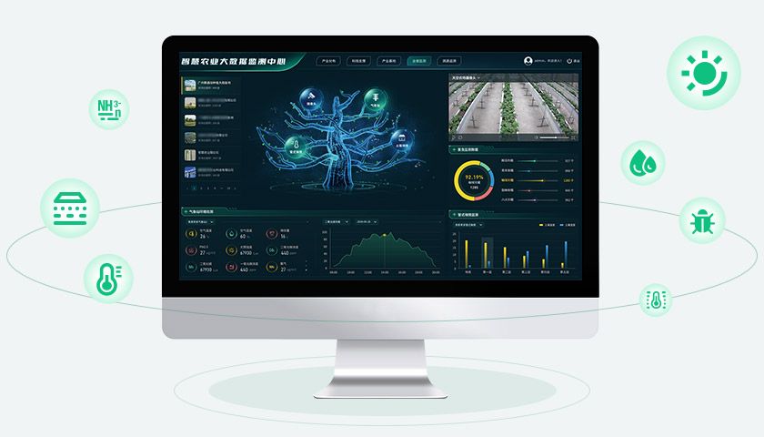 實時采集展示農(nóng)業(yè)生產(chǎn)現(xiàn)場的各種監(jiān)測數(shù)據(jù),包括土壤墑情、溫濕度、光照強度、病蟲害情況、水質氨氮含量等,直觀展示農(nóng)業(yè)生產(chǎn)環(huán)境情況,為數(shù)字化管理提供精準依據(jù)。